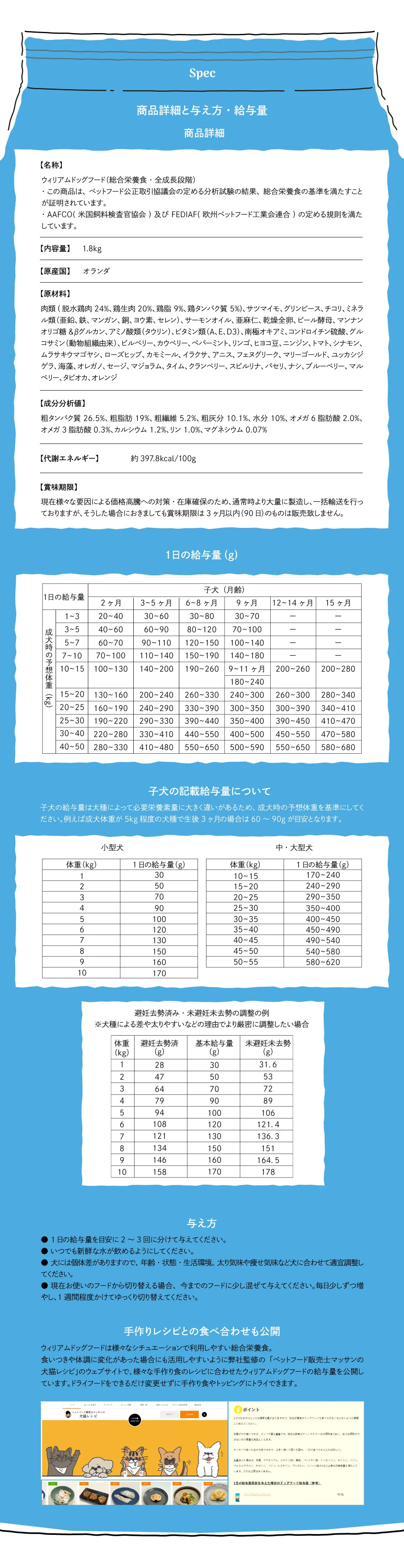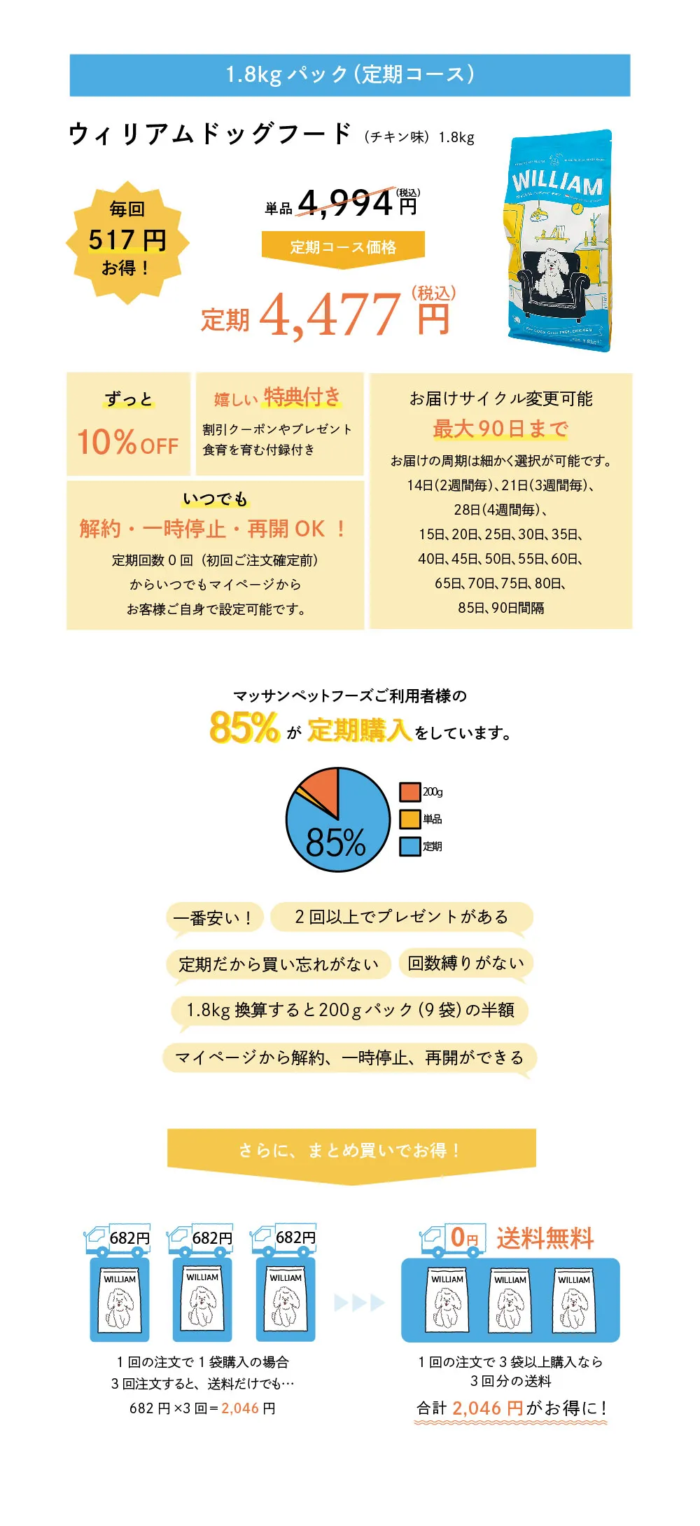 ウィリアムドッグフード チキン 1.8kg(定期コース)