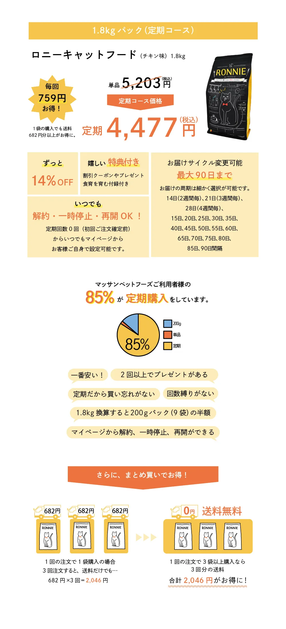 ロニーキャットフード チキン 1.8kg(定期コース)