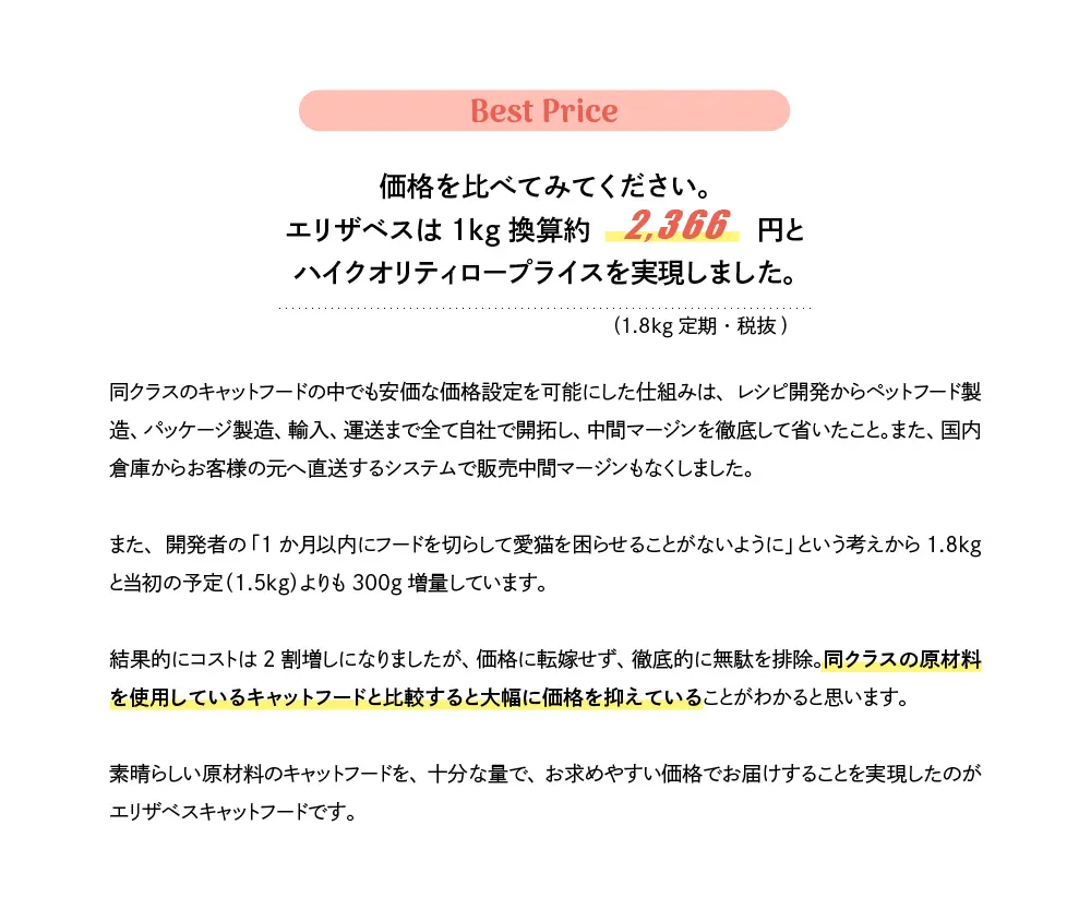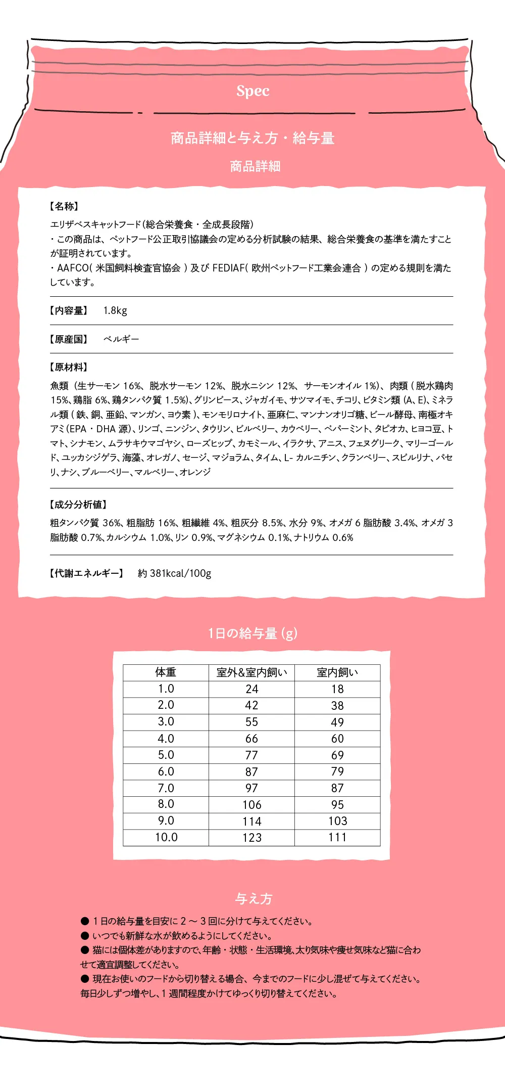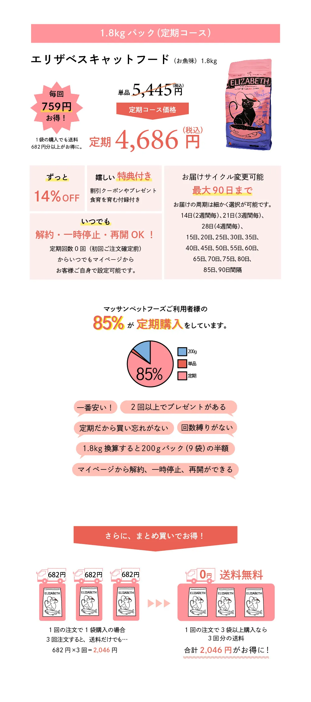 エリザベスキャットフード サーモン 1.8kg(定期コース)